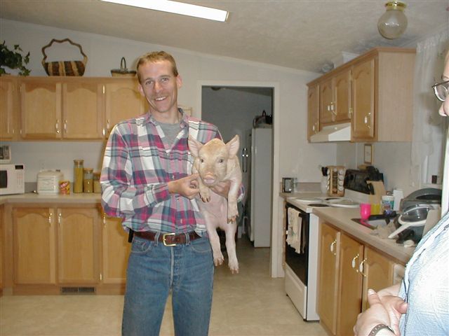Jeff Baber and Friend. The pig was a gag birthday gift. |